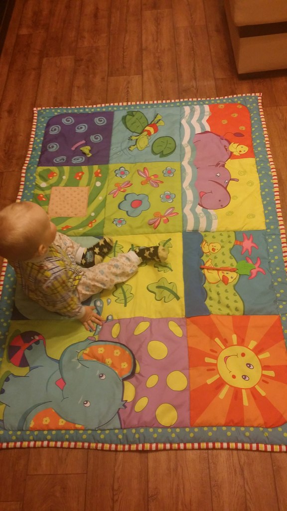 Коврик снабжен дополнительной мембранной прослойкой, предотвращающей попадание влаги, а специальная противогрибковая обработка предохранит малыша от паразитов. По всей поверхности коврика расположены разнообразные игровые элементы (прорезыватели, шуршалки, потайные кармашки, текстурные элементы и пр.).